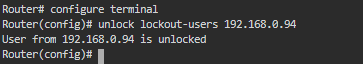 Router(config)# unlock lockout-users W.X.Y.Z